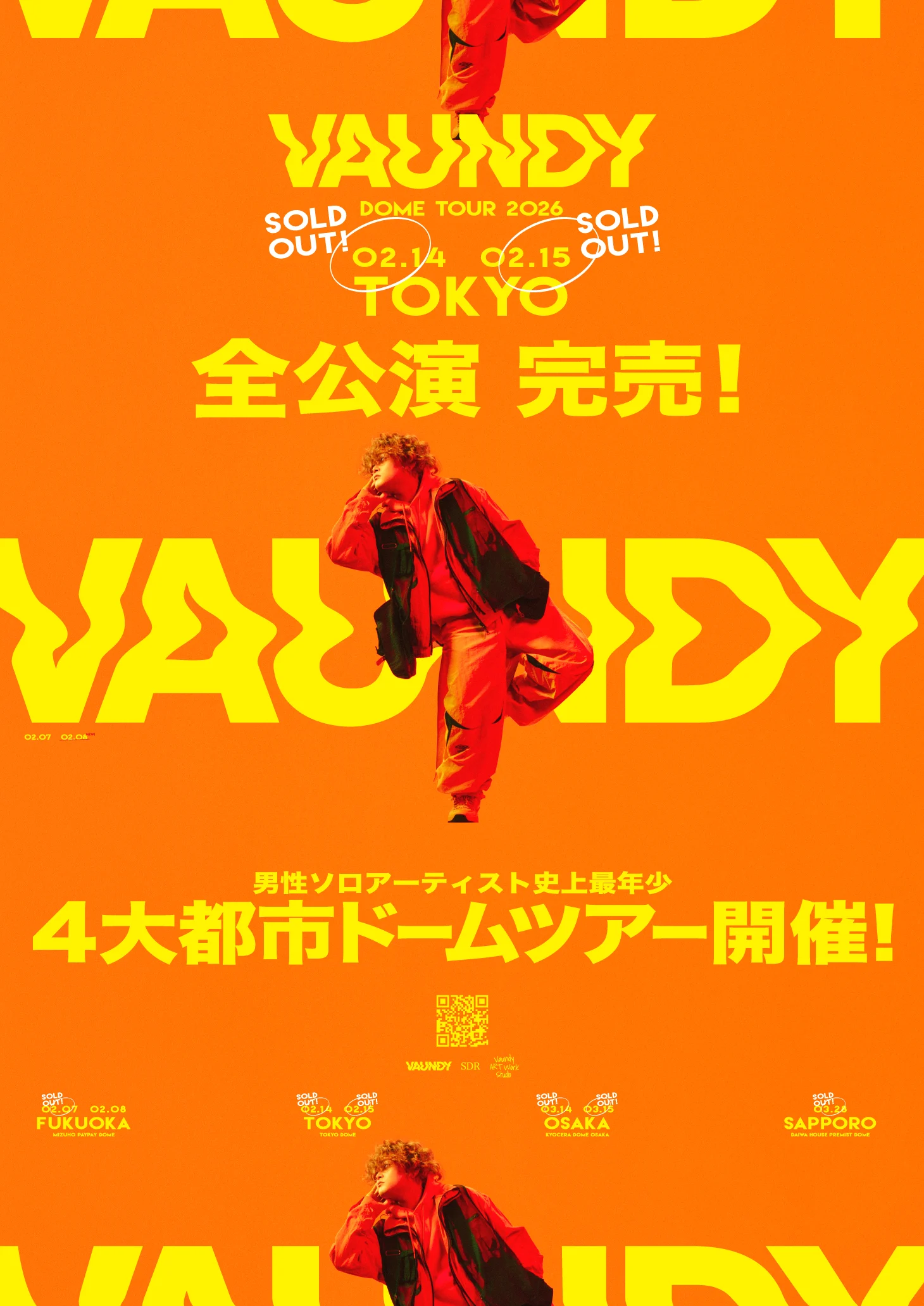 男性ソロアーティスト史上最年少全国4都市7公演のドームツアー「Vaundy DOME TOUR 2026 "SILENCE"」開催!Vaundy史上最大規模となる35万人動員予定の公演は全公演完売!