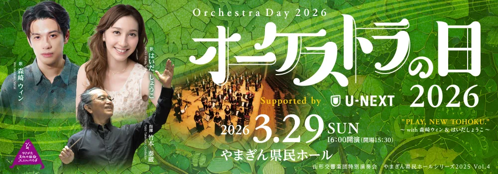 3月29日(日)「オーケストラの日2026 Supported by U-NEXT "PLAY, NEW TOHOKU."~with 森崎ウィン&はいだしょうこ~」開催!詳細は公式サイトをご確認ください。