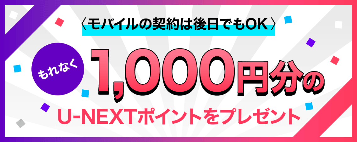 1,000円分のU-NEXTポイントをもれなくプレゼント。