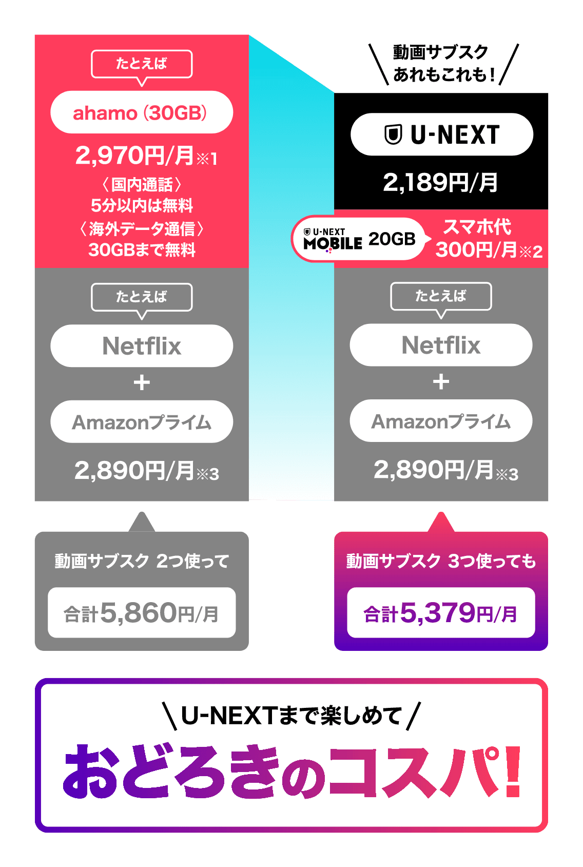 ※決済時に保有しているポイントは、優先的にU-NEXT MOBILEの支払い金額に充当されます。U-NEXTを解約しても、U-NEXT MOBILEの契約は継続され、引き続き利用可能です。