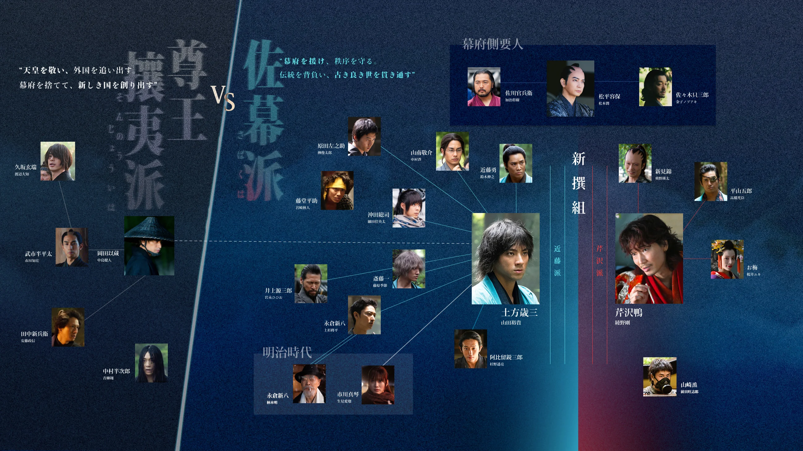 主人公の土方歳三を山田裕貴が、そのほか新撰組の志士たちを鈴木伸之、中村蒼、細田佳央太、上杉柊平、藤原季節、杉野遥亮、栁俊太郎、宮﨑秋人、岩永ひひおという強烈な個性と実力を兼ね備えた若き実力派俳優陣が演じる。 さらに、土方の宿敵であり盟友の「人斬り以蔵」こと岡田以蔵を中島健人が演じ、土方らに立ちはだかる“最強で最凶の宿敵”芹沢鴨を綾野剛が演じます。そのほか、奥野瑛太、高橋光臣、金子ノブアキ、安藤政信、桜井ユキといった多彩な俳優陣も出演する。