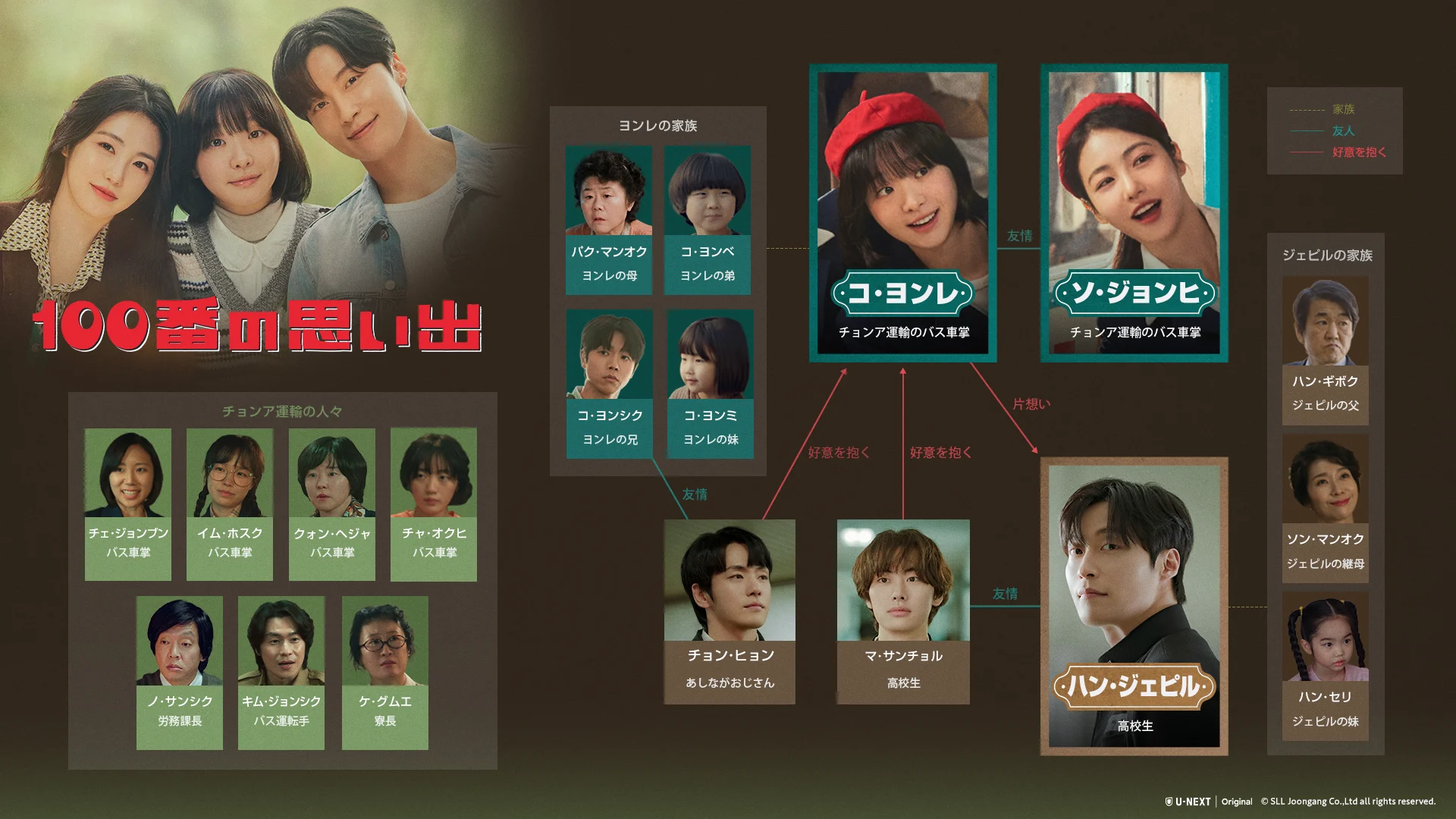 100番バスで働くヨンレとジョンヒの輝かしい友情と、そんな二人が恋に落ちてしまうジェピルとの切ない初恋を、1980年代のノスタルジックな韓国の背景とともにエモーショナルに描かれる本作。信頼と実力のある若手俳優三人が織りなす、笑って泣ける大人の青春ロマンス。