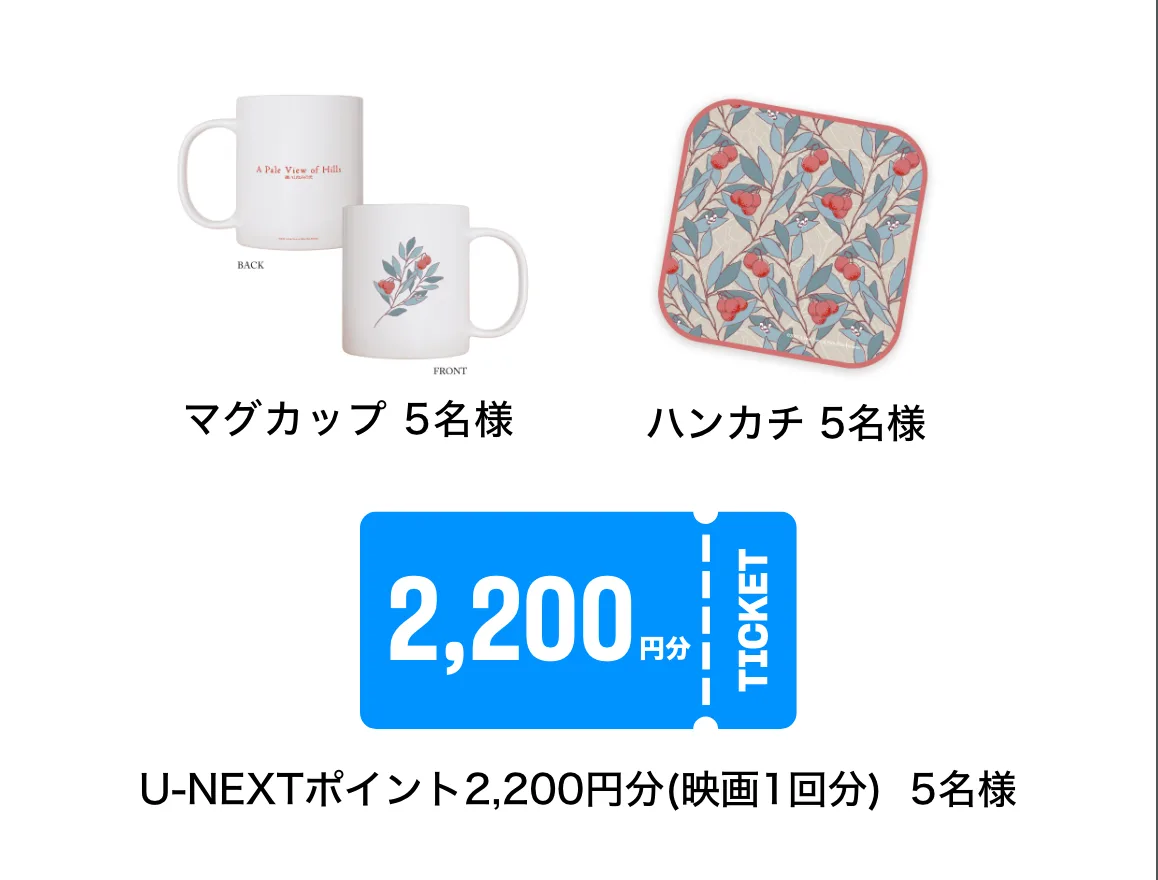 本キャンペーンページからU-NEXTを登録の上、オンラインチケット予約「KINEZO」でU-NEXTポイントを利用して、「遠い山なみの光」を予約、鑑賞された方。