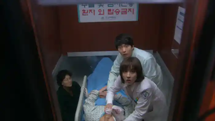 患者とともに故障したエレベーターの中に閉じ込められたヘジョ。患者は麻酔から覚め、大暴れした末に無呼吸状態になってしまう。