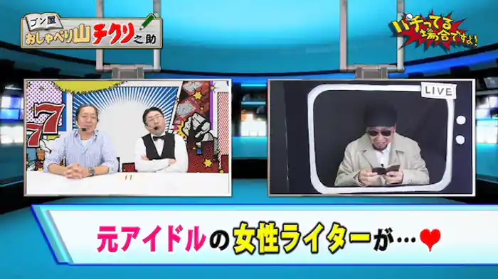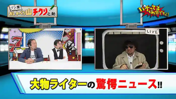 大崎一万発と井田将勝によるパチンコ・バラエティショー。今回は、あきげんが登場する「パチッテルコメディーショー」、「栄華のパチンコ写真時代・特別編」の2本立て。この特別編は胸熱エピソードで必見だ。
