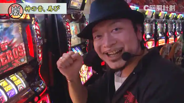 「ミリオンゴッド-神々の凱旋-」今回もお題は「神の雷、再び」。PGGが引けなければ神の雷という恐怖の罰がつくので、4人は必死だ。HYO.はPGGを引いて神の雷を回避。梅屋は出玉を伸ばす。嵐とマコトはさえず…。