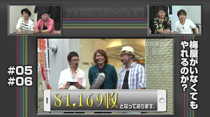 嵐、梅屋、飄、マコトの4人が中心となって、さまざまな立ち回りを見せる。番組はついに100回目の放送を迎えた。今回も前回と同様に、これまでの面白映像で振り返っていく。見逃せない名シーンが目白押しだ。