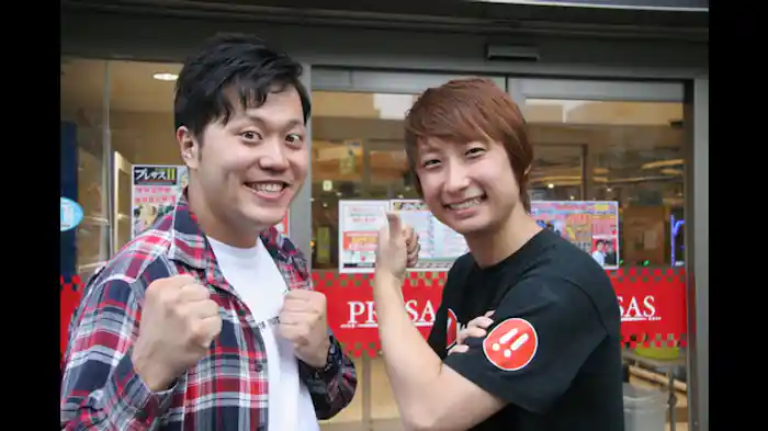 前回、ジャイロキャプテンとの勝負をドローに持ち込み無敗記録を伸ばしたエハラマサヒロ。今回の刺客は「パチンコ攻略マガジン」のライター・助六だ。「KYORAKU」Tシャツを着てやる気満々だ。