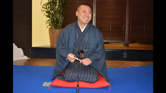 滋賀県出身で初の江戸落語家。元々、バンドのボーカルや司会業など多岐に渡る活躍をしていたが、落語の面白さに目覚め、その門を叩く。