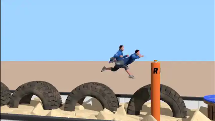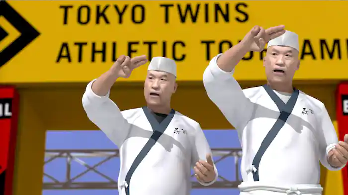 双子の双子による双子のためのアスレチック大会。1st、2nd、3rdの3つのステージに配置された難関障害物に挑戦する。すし職人の双子はスタート早々に兄が弟の腕でピチピチ跳ね、プロボーラーの双子は弟が兄の頭を鷲掴みにして投げ…。