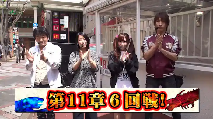 「ぱちんこCR真・北斗無双」第11章7回戦は、しおしおペア対ヒキ強、天野ペア。圧倒的最下位のヒキ強、天野は大逆転を狙って真北斗無双での勝負を選択する。一方、しおしおペアはライトミドルで手堅い勝負に出る。