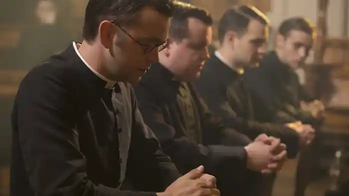 ブラウン神父は母校・アプコット神学校で、学生・ポッツから告白を受ける。その内容は、研修中に事故死した学生に関することだった。だが、パニックを起こしたポッツは懺悔室を飛び出し、塔の上から転落してしまう。