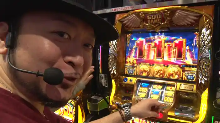 「ミリオンゴッド-神々の凱旋-」愛知県にやってきた嵐は沖ドキ狙いで入店。しかし、データ表示機が前日最終ヤメゲーム数が確認できたために、ひとまず凱旋のシマへ移動。すると、前日1217Gヤメの台を発見した。