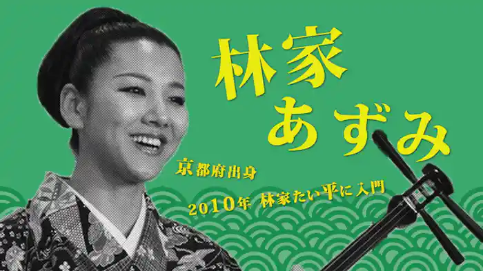 登場するのは、林家あずみ。演目は「三味線漫談」だ。彼女は、ラジオ番組で林家たい平と共演し、三味線漫談家を目指したいと相談したところ、弟子入りを勧められたという。美人で明るい彼女は老若男女に人気だ。