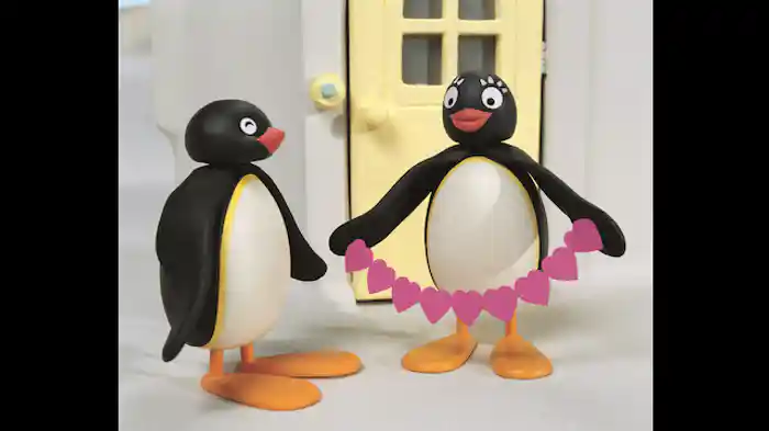 バレンタインデーのカードが届いたピングーは、うれしくてパパに自慢する。すぐに返事のカードを作り始めるが、うまくいかない。すると、ピンガがカード作りのヒントをくれる(「ピングーのバレンタインデー」)。