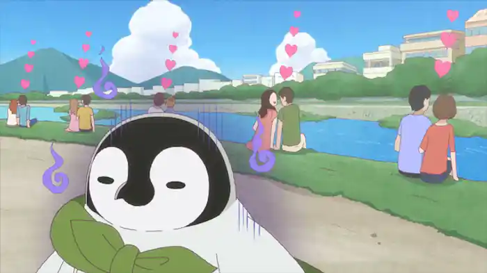 京都に住むコウテイペンギンのひな・ちとせちゃんが、人々と触れあったりおいしい物を食べたり、好奇心の赴くまま京都の街を探訪。カップルが集まる鴨川沿いを歩くちとせちゃんは、構ってほしいのに相手にされず...。
