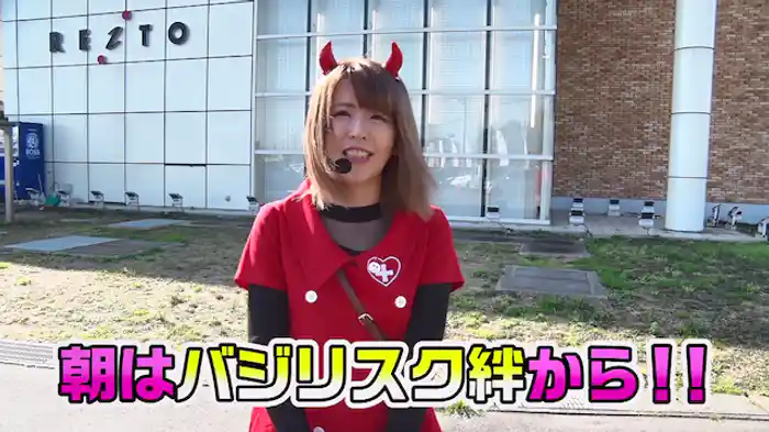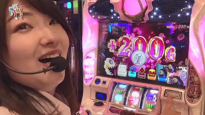 「バジリスク~甲賀忍法帖~絆」引き続き実戦を行うのは日向あつみ。前半はバジリスク絆で、真瞳術チャンスを引いたところで終了。後半は6個乗せたところからスタートして、一挙に1500枚を獲得する。