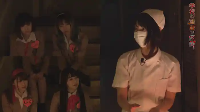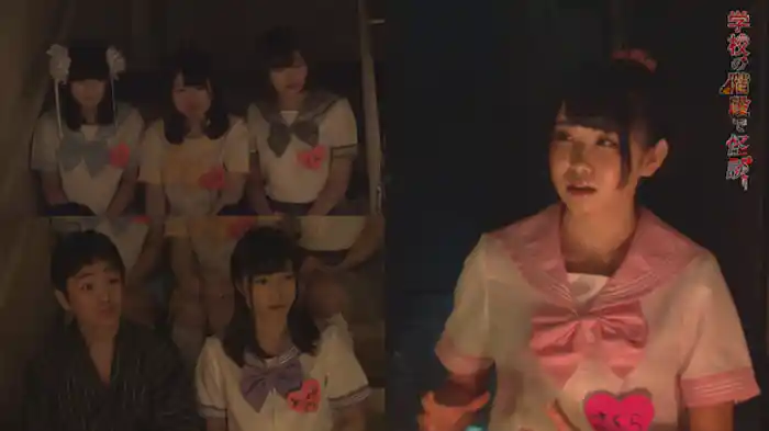 心霊現象の宝庫、“学校の階段”でダンスが評判のアイドル・Shallm Catに女流怪談師・藍上が特別な怪談を披露。廊下から異音が聞こえてきて、全員顔面蒼白に。誰が怖がっていたのかメンバー同士で疑心暗鬼に陥る。