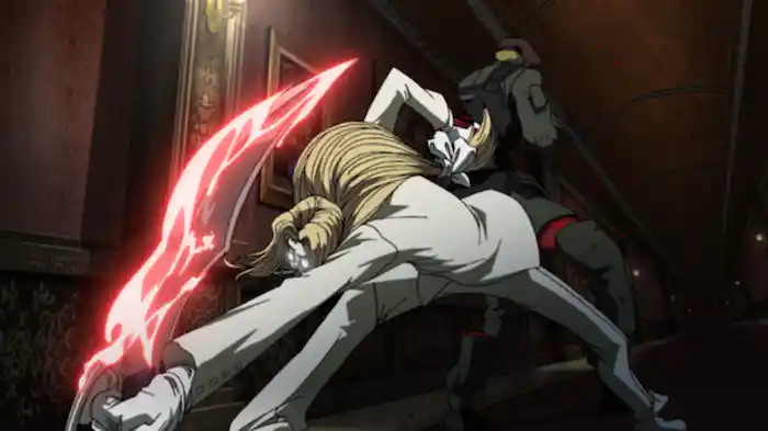 ヘルシング邸を急襲するゾーリン部隊。そこに待ち受けるは、アーカードの主人・インテグラの留守を預かるワイルドギースとセラス・ヴィクトリア。女同士、化け物同士の熱い戦いの火蓋が切られる。