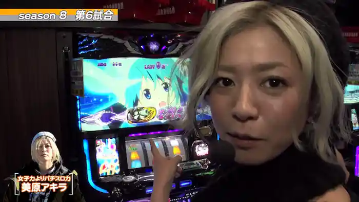 「パチスロディスクアップ」選ばれたメンバー6人の総当たり戦で繰り広げられるパチスロバトル。今回はシーズン8、第7試合、マコト対悪☆味。好成績を収めている者同士の勝負だ。ディスクアップやサラ番を打つ。