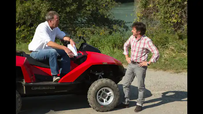 アルファロメオ4Cで水陸両用バギーと競うリチャード。ジェレミーは、ベルギーのスパ・フランコルシャン・サーキットを新型マクラーレンP1で爆走する。そしてジェームズは、アフガニスタンで軍用車を運転する。