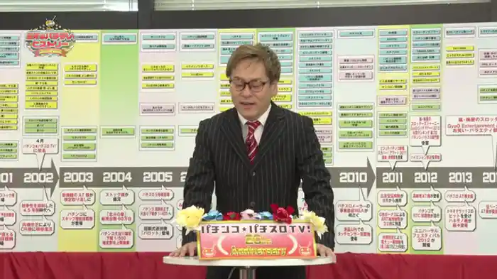 出演者は射駒タケシ、守山有人、ゼットン大木、水瀬美香。「パチテレ!」の開局20年を記念して、人気ライターたちが集合。当時の背景や活躍していた人物を取り上げて、盛り上がる。ジャンルごとに系譜としてまとめられており、お宝映像が満載だ。