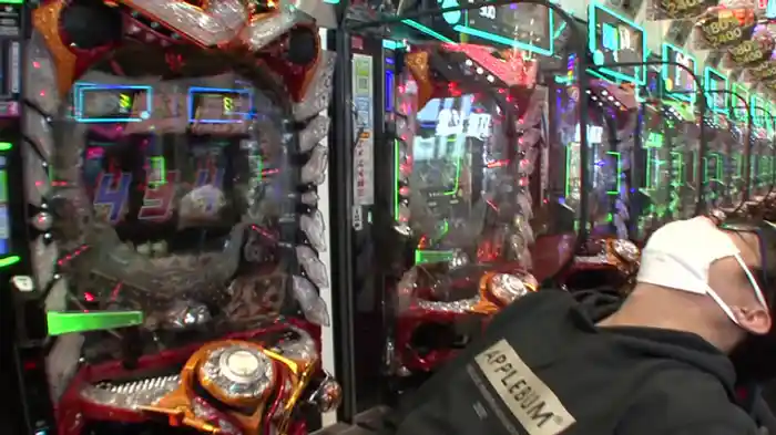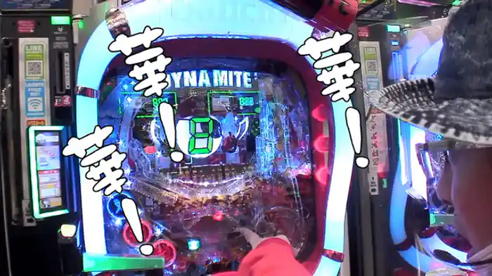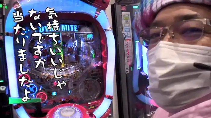 「Pパイレーツオブダイナマイトキング」前回、ういちと鈴虫君は忍魂暁ノ章を並びで打った。鈴虫君の台の挙動は良く、高設定の期待が高まり続行。一方、ういちはパイレーツオブダイナマイトキングへ移動する。
