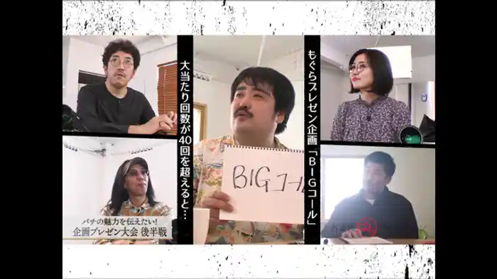 パチンコ、パチスロ業界を盛り上げようと有識者たちが集まり、さまざまな企画を考案、実践している制作会社がある。そこに「ここで働きたい」という2人が現れ、木村魚拓、沖ヒカル、青山りょうに語り出した。