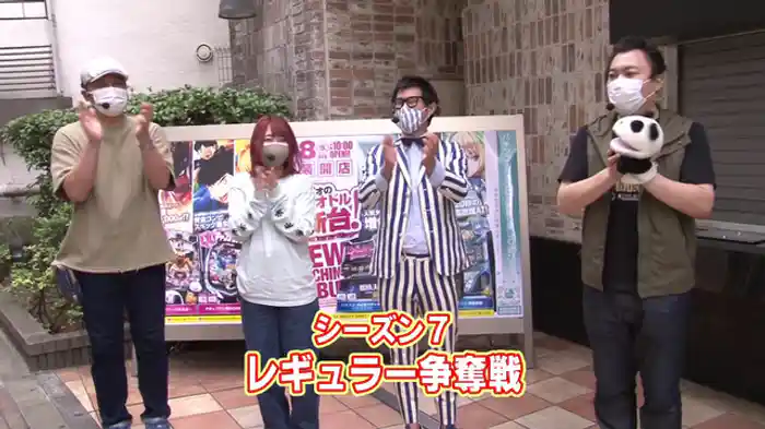 参戦者は「パチンコ攻略マガジン」で活躍する強者たち。新規参加から連勝を果たし、勢いに乗るパンダがMC。山ちゃんボンバーは前シーズンは奮わず、再度の争奪戦参加となった。今シーズンは結果を出したいところ。長期休暇明けのドテチンにも注目だ。