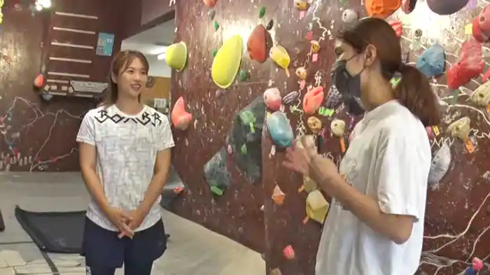 東京オリンピックのスポーツクライミングでは、野中選手が銀メダル、野口選手は銅メダルと日本人初のメダルを獲得した。田村友絵選手がレベル別に指定されたホールドを使って、高難易度レベルに挑戦する。