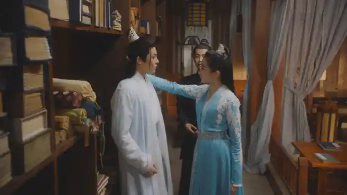 班婳は反物店に容瑕が現れた夢の話を信じてもらうため、そこへ母親を連れていくが、母親の去った後に彼が現れる。その後、班淮は班婳から謝啓臨の片目が見えなくなっている夢を見たと聞き、謝家をのぞきにいく。