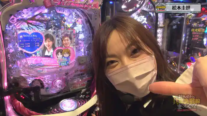 「ぱちんこ 冬のソナタ SWEET W HAPPY Version」今回ゲストとして登場するのは松本圭世。オープニングにゼットン大木の姿がない。勝負する機種はパチンコの冬のソナタ、パチスロのバジリスク絆2などだ。