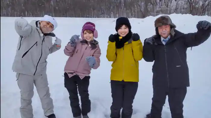 網走出身のリポーター・多田が合流し、隆・田口チームVS雅紀・多田チームでワカサギ釣りをすることに。そして、流氷ウォーキングが体験できる知床・斜里町へ。流氷の上で4人は「のりのりまさのりダンス」を披露!