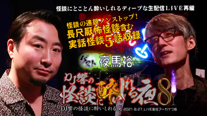 ゲストは、怪談最恐戦2020優勝の実力派、“後味の悪い嫌な話”を得意とする夜馬裕氏。変態といわれる程、怪談好きの2人が思う存分怪異を語りあう激怖回となった。夜馬裕氏は20分に及ぶ長編を披露。