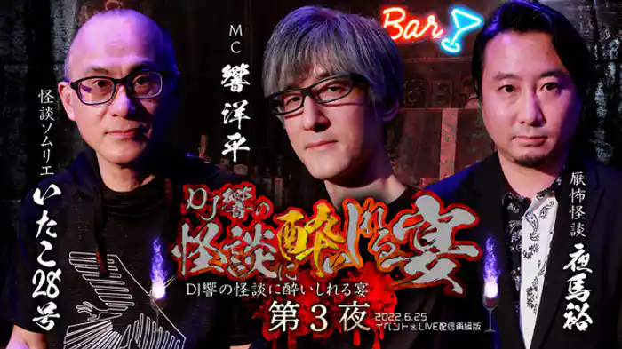 怪談をこよなく愛する怪談DJこと響洋平が毎回怪談好きなゲストを招く番組の公開版。響洋平とゲストが気ままにトークをしたかと思うと、身震いする怪談で聴衆を魅了する。