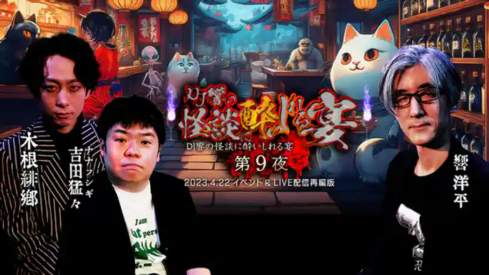 人気コンビ・ナナフシギの吉田猛々氏と次世代イケメン怪談師・木根緋郷氏を招き、オカルトとUMA愛あふれる宴を開催。前半は最近響氏が好きだという「異世界」の怪談からスタート。木根氏の実体験も含め次々と連鎖。