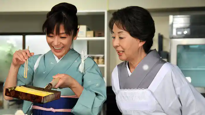 お客の名前を毛筆で書いたラベルを貼って贈る予定だった記念品の日本酒に、ラベルが貼られていないミスが発覚。困った薫(加藤貴子)は奈津枝(池内淳子)の部屋を訪ね…。