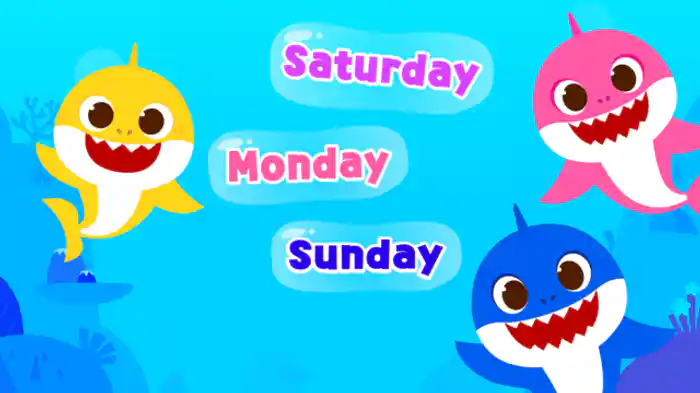 サメの仲間たちが、歌とアニメーションで一週間の曜日を楽しく紹介する。月曜日から日曜日まで、それぞれの曜日を覚えながら、リズムに合わせて歌い踊る。