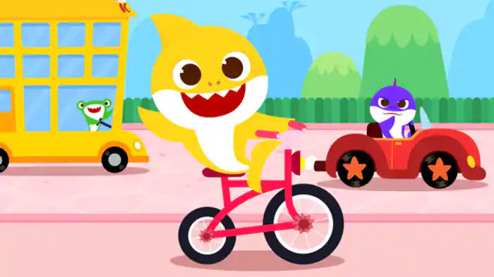 ベイビーシャークが乗り物の世界へ案内。自転車、車、バスなど、様々な乗り物が登場し、それぞれの特徴的な音や動きを歌いながら楽しく紹介する。乗り物の種類を学ぶ冒険が始まる。