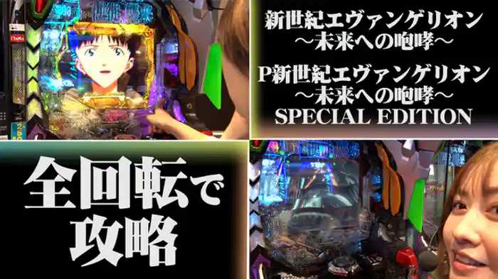 「新世紀エヴァンゲリオン~未来への咆哮~」特命係からパチンコ攻略係に異動となっての初業務だ。初回はエヴァ15とライトミドルのエヴァにスポットを当て攻略に挑むのは岡田ちほ、森本レオ子、湯川舞、大水プリン。