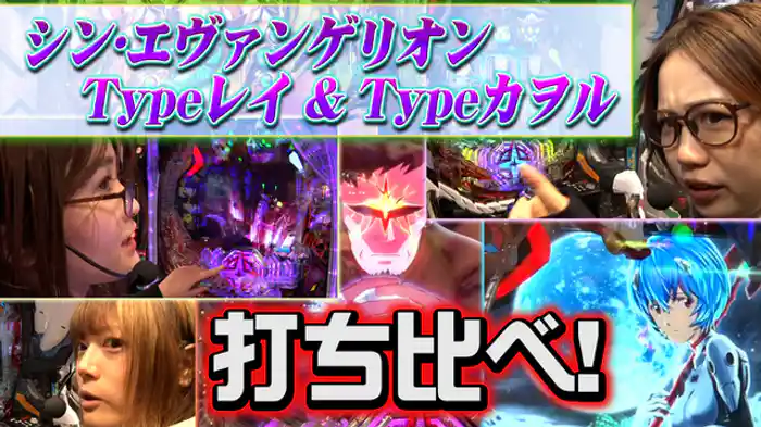 「ぱちんこ シン・エヴァンゲリオン Type レイ」シン・エヴァンゲリオンのTypeレイとTypeカヲルを打ち比べる。レイを打つ森本レオ子が早々と大当たりを引く。一方カヲルを打つ岡田ちほにはスマパチの洗礼が...。