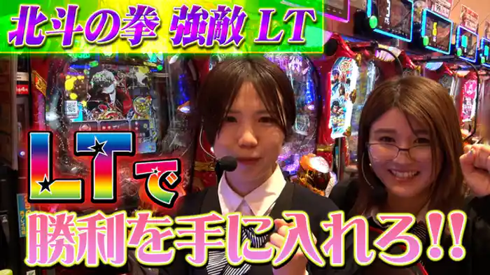 「P北斗の拳 強敵 LT」森本レオ子と岡田ちほは、北斗の拳強敵で幸先よくラッキートリガーを射止め、プラス差玉で前半戦を終えた。後半戦はさらなる出玉を狙って、新体制での初戦勝利を目指すが...。