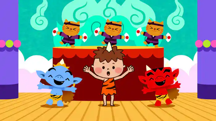 鬼のパンツの歌が始まる。元気な鬼の子供たちが、丈夫で強いパンツについて歌い踊る。楽しいリズムで、パンツの魅力を伝える。