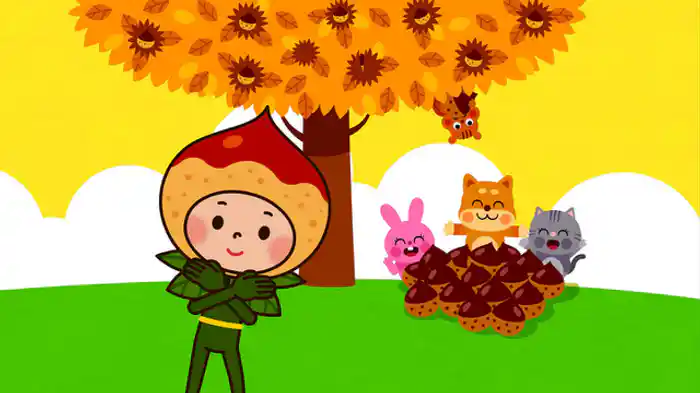 クリの木の下に、かわいい動物たちが大集合!「おおきなくりのきのしたで」を歌って、みんなでわいわい手遊びを楽しむよ。最後には、ちょっとしたハプニングで大騒ぎ!?