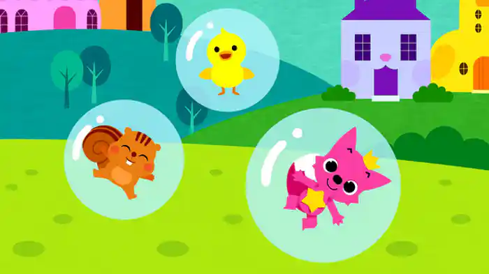 シャボン玉が空高く舞い上がり、やがて消えていく様子を歌とアニメーションで描く。可愛らしい動物の仲間たちがシャボン玉と楽しく遊ぶ、心温まるひととき。