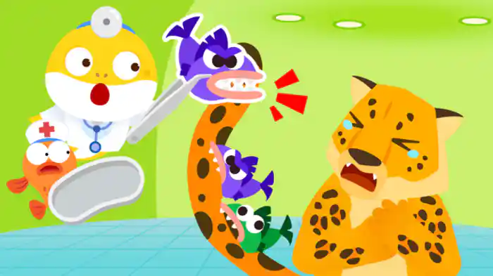 ベイビーシャークの病院に、怪我をした動物たちがやってくる。ライオン、チーター、クマの痛みを和らげ、ベイビーシャークとウィリアムが優しく治療。みんなを元気にするため、力を合わせる。