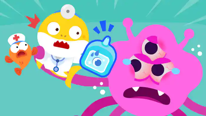 ベイビーシャークが医師となり、困っている患者たちを診察する。お腹を痛がるおばあちゃんシャークや、喉にトゲが刺さったおじいちゃんシャークを、ベイビーシャークと仲間たちが優しく治療する物語。