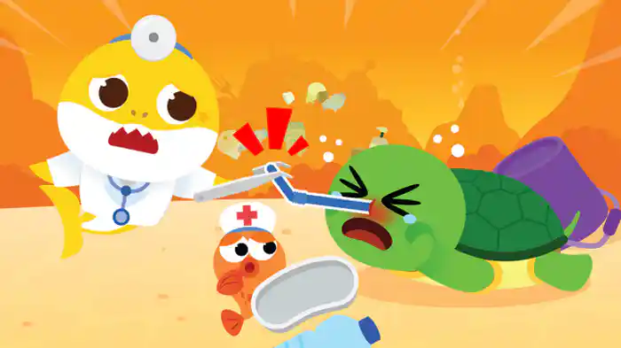 ベイビーシャーク病院に、海で怪我をした生き物たちがやってくる。カメ、イルカ、アザラシが、人間が捨てたゴミが原因で傷つき、ベイビーシャークとウィリアム看護師が懸命に治療にあたる。