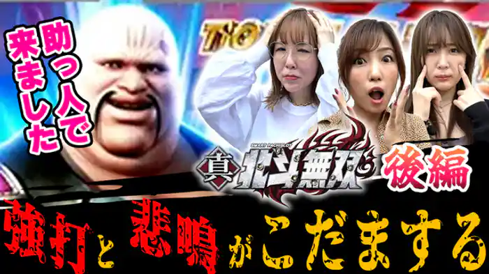 「スマスロ真・北斗無双」ムリゲー台に女子ライター3人・河原みのり、水瀬美香、フェアリンが挑む。しかし、状況は過酷だ。メンバーたちの魂の叫びがホールにこだまする。真北斗無双を実戦する。