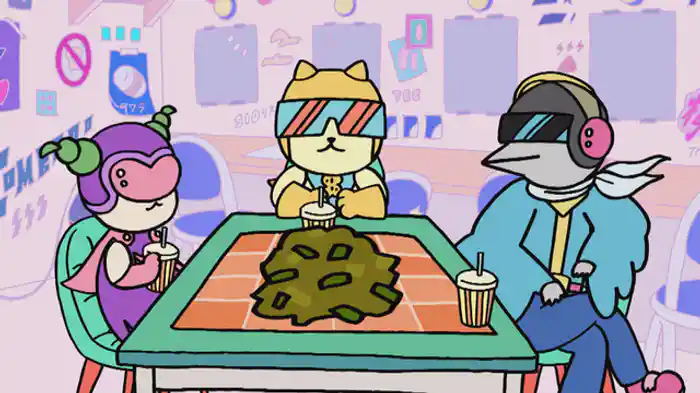 オニギリズの3人による、ときにゆるく、ときに激論を展開する料理話に思わずくすっと笑える。声優を務めるオリエンタルラジオの2人と元NMB48・山田菜々の熱演も必見!
